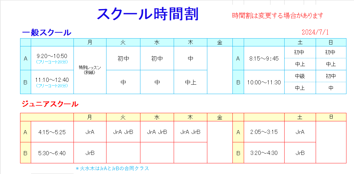 *一般クラス・・・1年以上の経験者(未経験者不可)