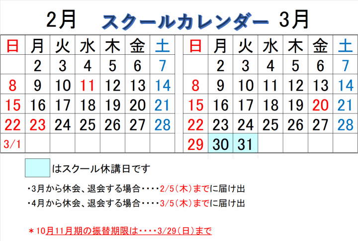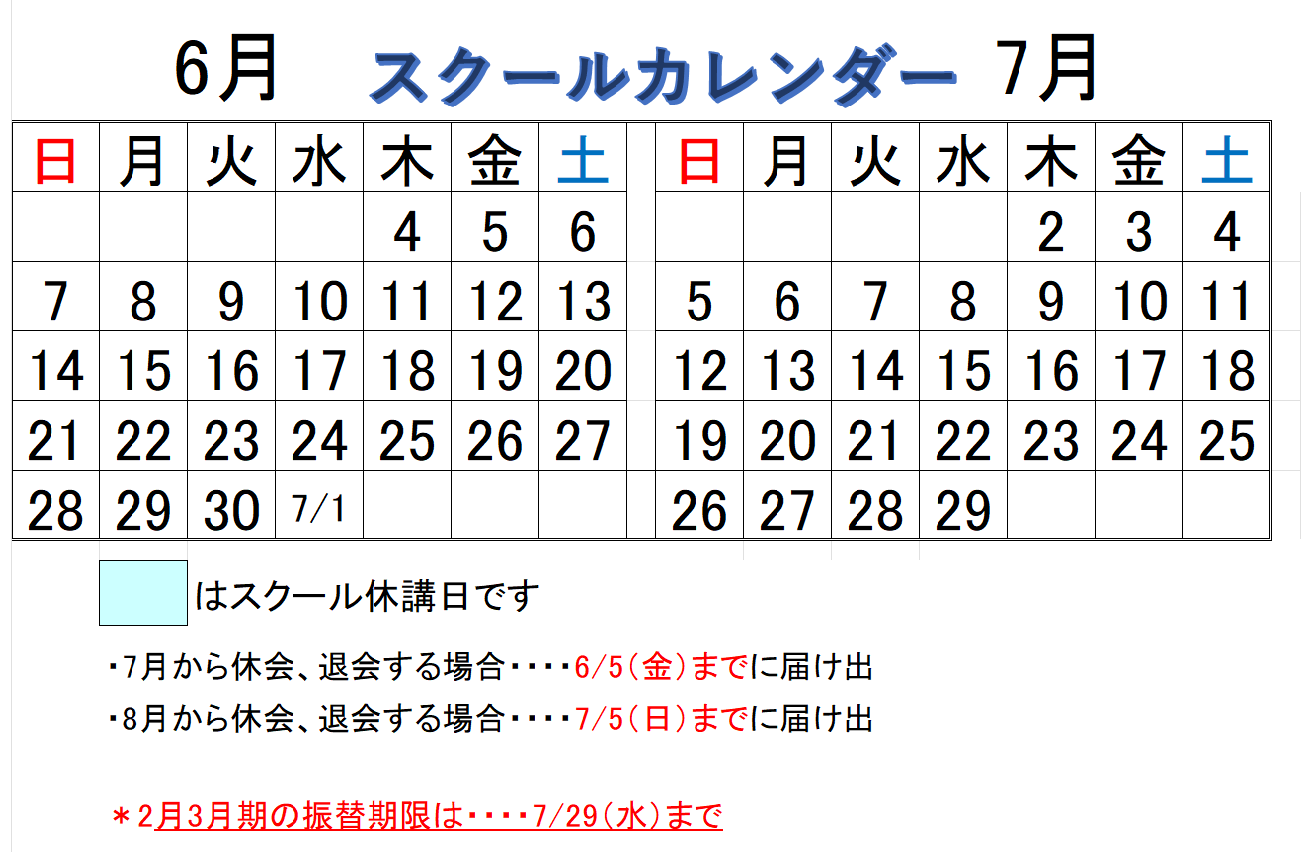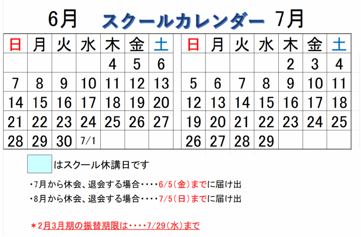 ①、スクール休講日(■枠の日)